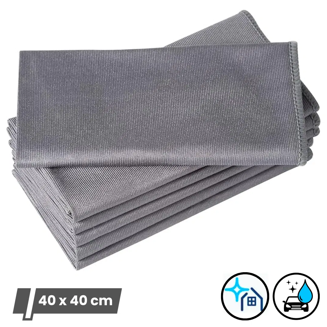 Microfiber Glass Towel For Cleaning Glass, Windows, & Mirrors (Pack of 6, Grey, 40x40cm)